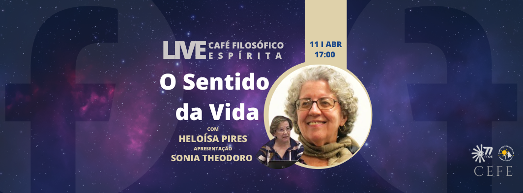 Heloísa Pires e Sonia Theodoro em um bate papo filosófico Dia 11 de Abril, às 17h, tem Live do Café Filosófico Espírita, transmitido pelo nosso Facebook. Com a participação de Heloísa Pires em um bate papo filosófico com Sonia Theodoro, sobre tema O Sentido da Vida. Não perca! Transmissão ao vivo pelo Facebook do centro. Acesse aqui: https://www.facebook.com/centroespiritanossolar/ Café Filosófico é realizado em parceria com o Centro de Estudos Filosóficos Espírita